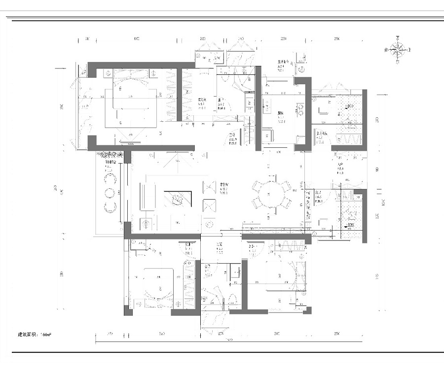 原始戶型公共區(qū)域散亂零碎,通過分析屋主的空間功能需求及用途之后,進行重新解構(gòu)改造。首先將兩處面積較大的生活陽臺納入公共空間,在擴大客餐廳面積后,又獨立出一間多功能空間。整合后的戶型變得方正、整齊,視野開闊并富有多元的互動性。其次為空間的基調(diào)注入經(jīng)典的黑白灰,鮮明的對比與自然的視感過渡,在層次漸進中渲染出簡約、現(xiàn)代的精奢之感。最后施以木色點綴,與空間互相融合,增添柔和溫度